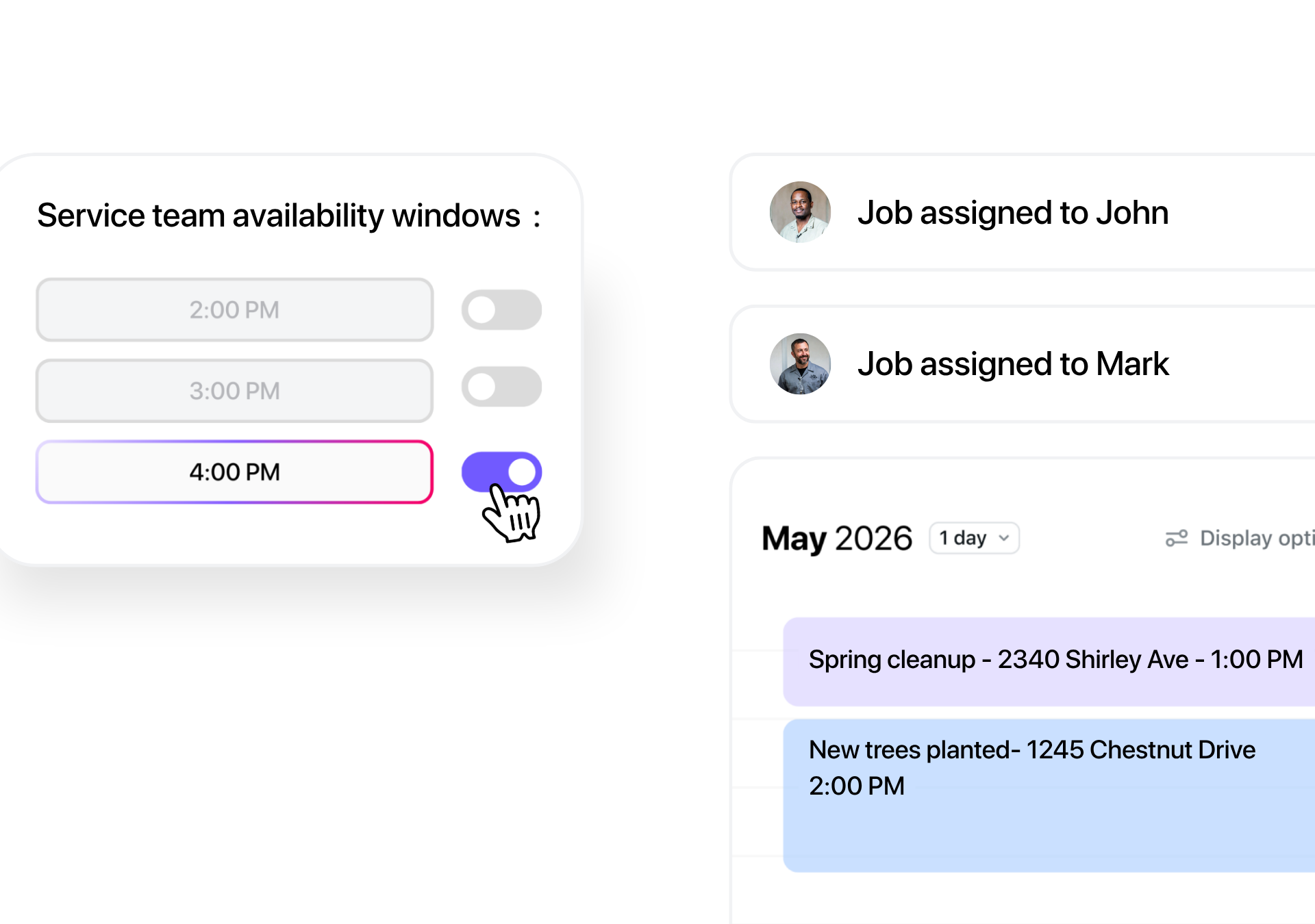 Wonderly works for solo operators and teams. Add your employees, assign jobs, and everyone sees the schedule. Round-robin booking distributes leads fairly.