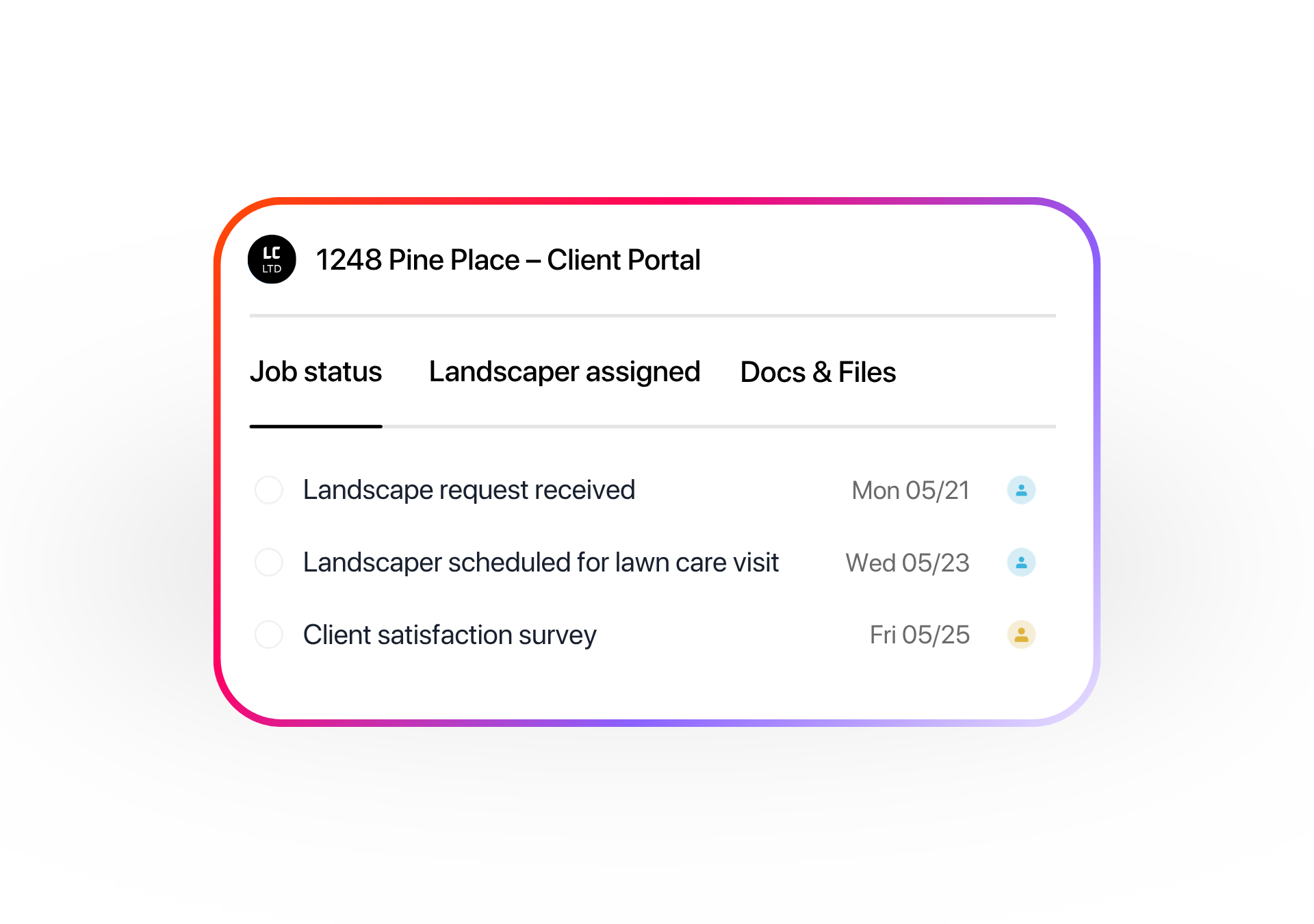 Give each customer their own private client portal where they can see job status, job files or photos, and more. Plus, they can contact you easily.
