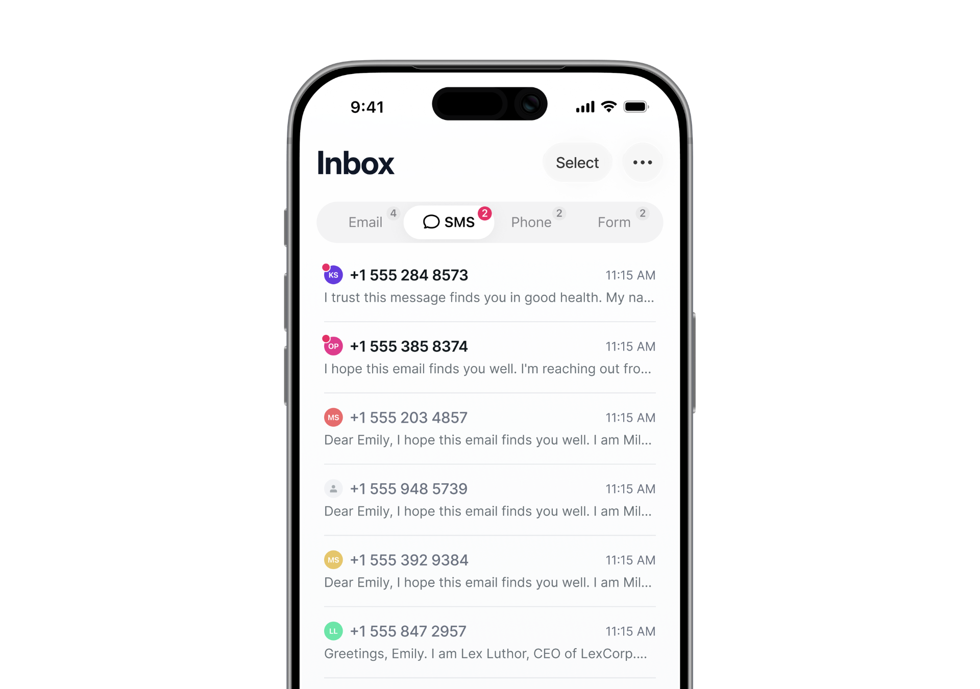 Open your Wonderly inbox to see calls, texts, emails, and voicemails from customers and leads. Plus, see notifications on job status, upcoming work, and more.