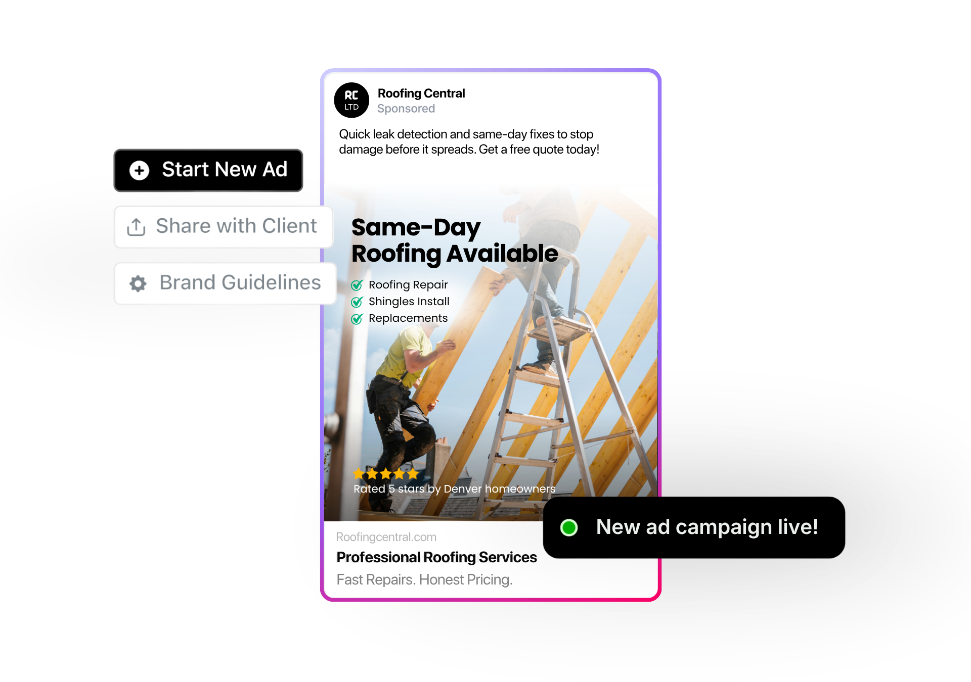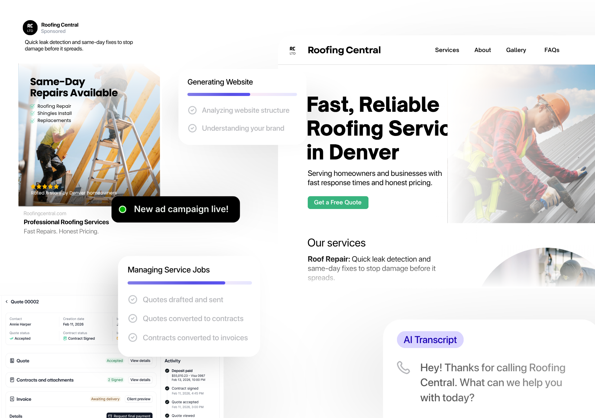 Wonderly’s AI builds you a conversion-optimized website in under 15 minutes. It’s designed to show off your roofing business and make you the obvious choice for customers. SEO-ready so locals find you first.