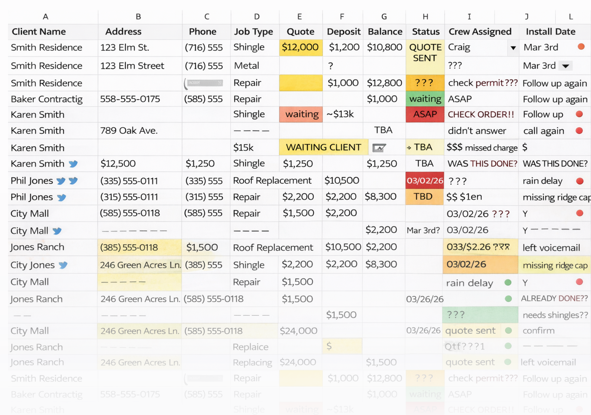 - Jobs tracked on whiteboards and sticky notes. Disorganized.