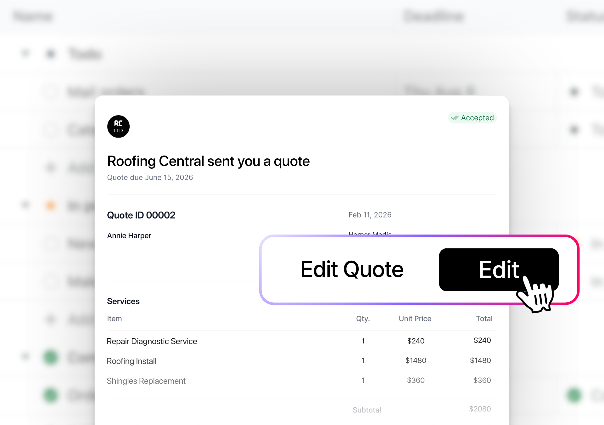 - Quotes, invoices, and follow-ups are faster and in one place.