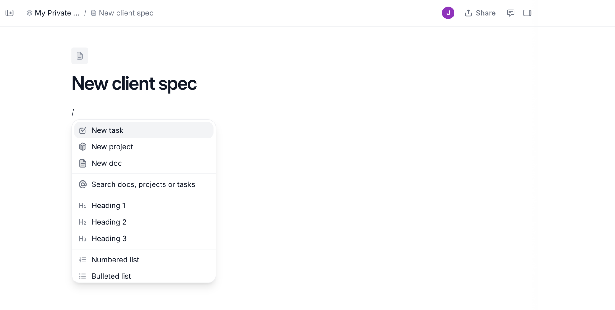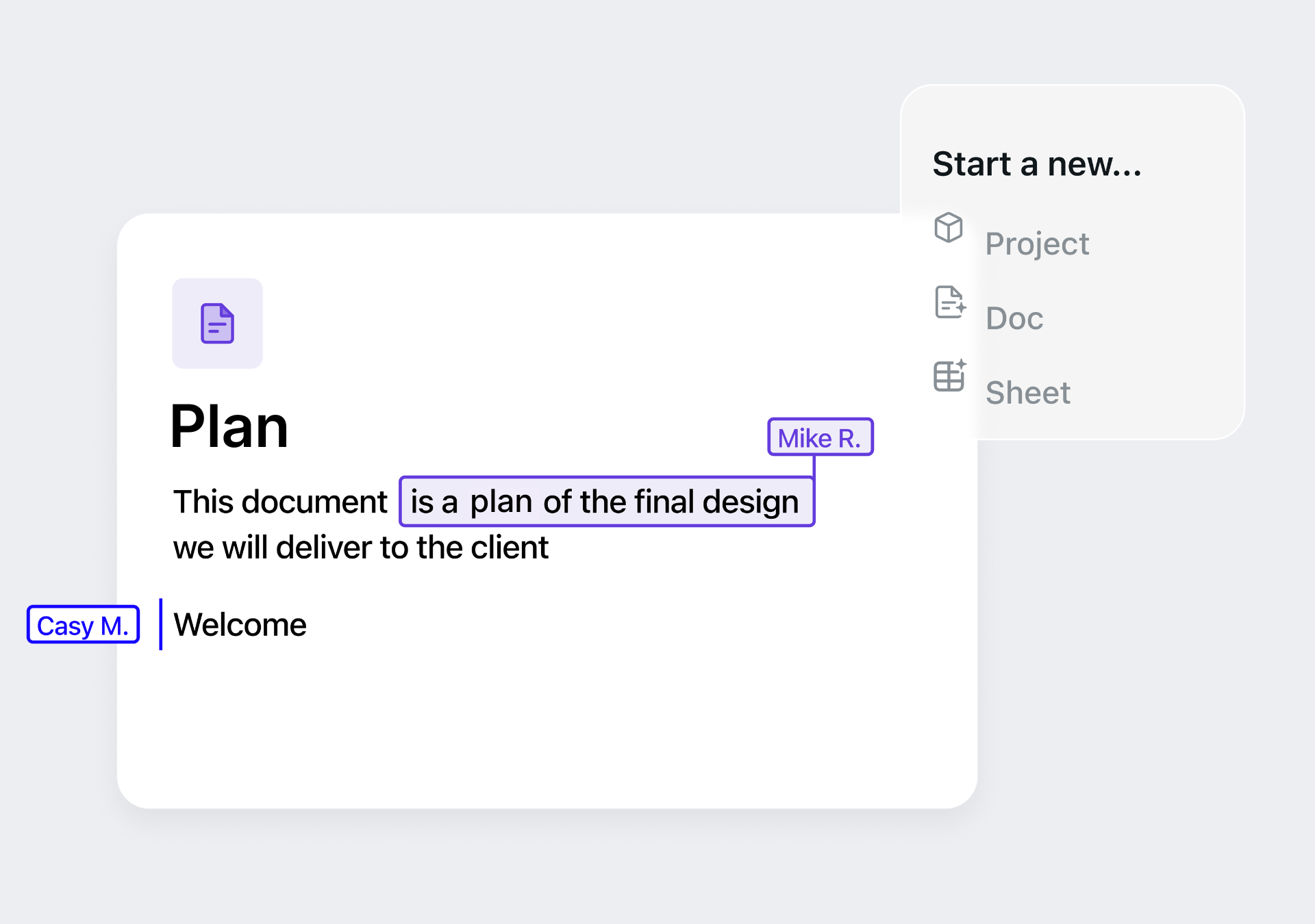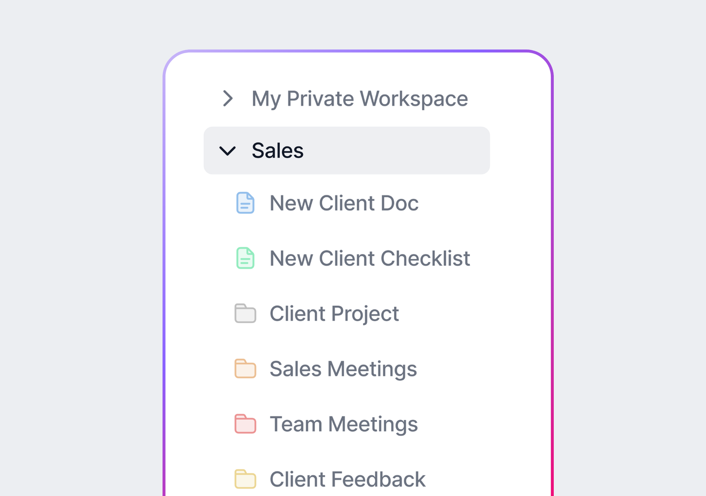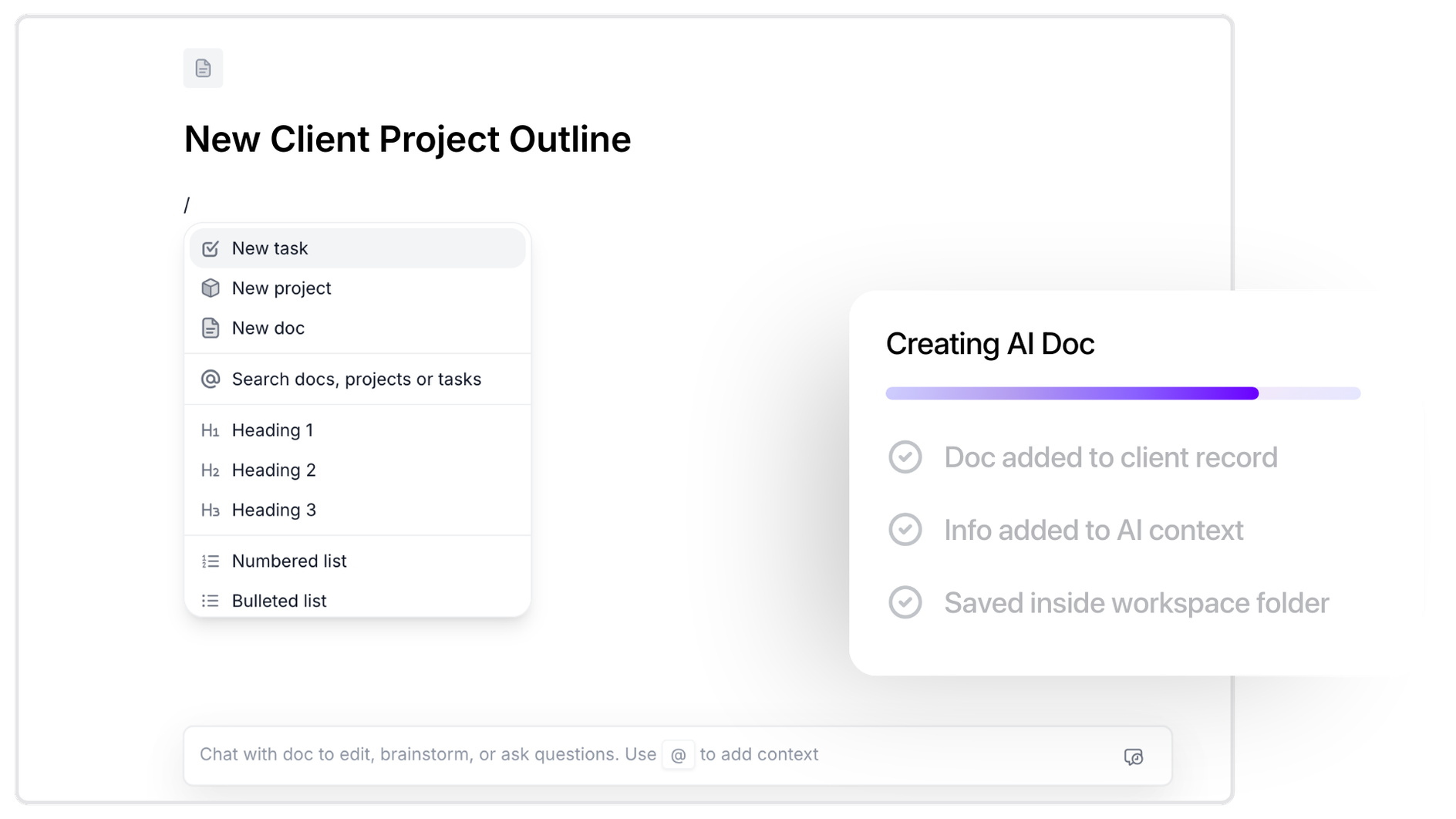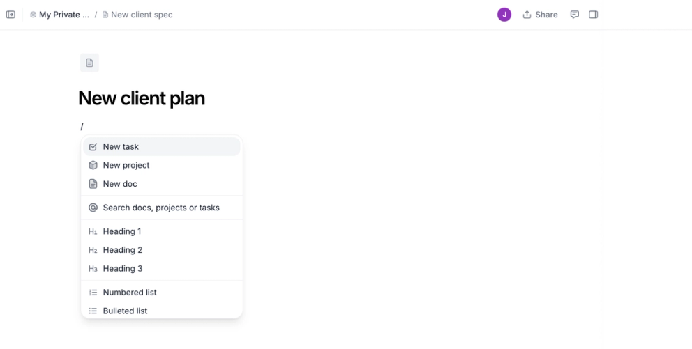 Create docs and folders inside Wonderly for proposals, client information, project plans, or anything else you need.