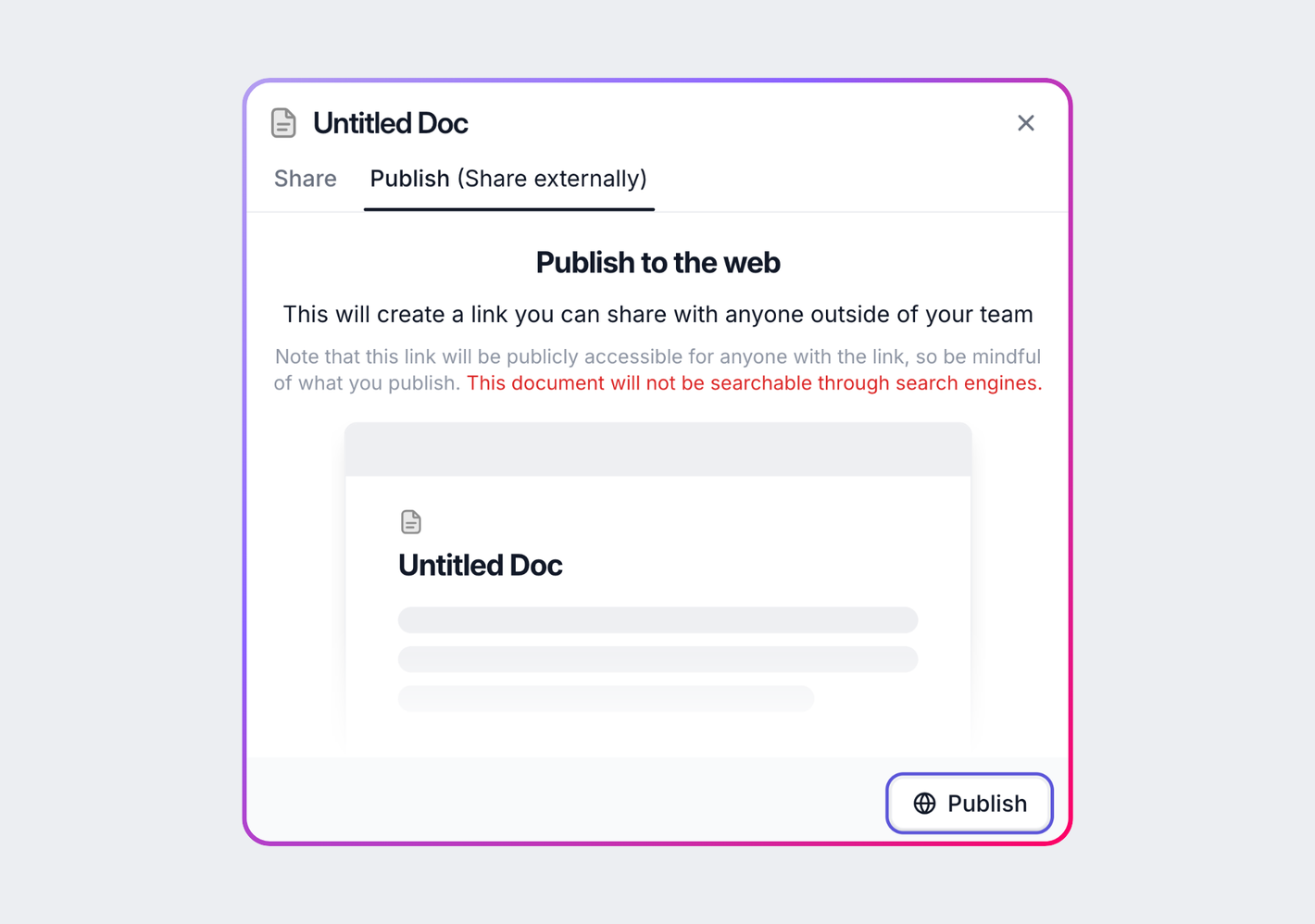 Yes. You can export any doc as a PDF or publish it directly to the internet. Share it with clients, vendors, or anyone else who needs to see it.