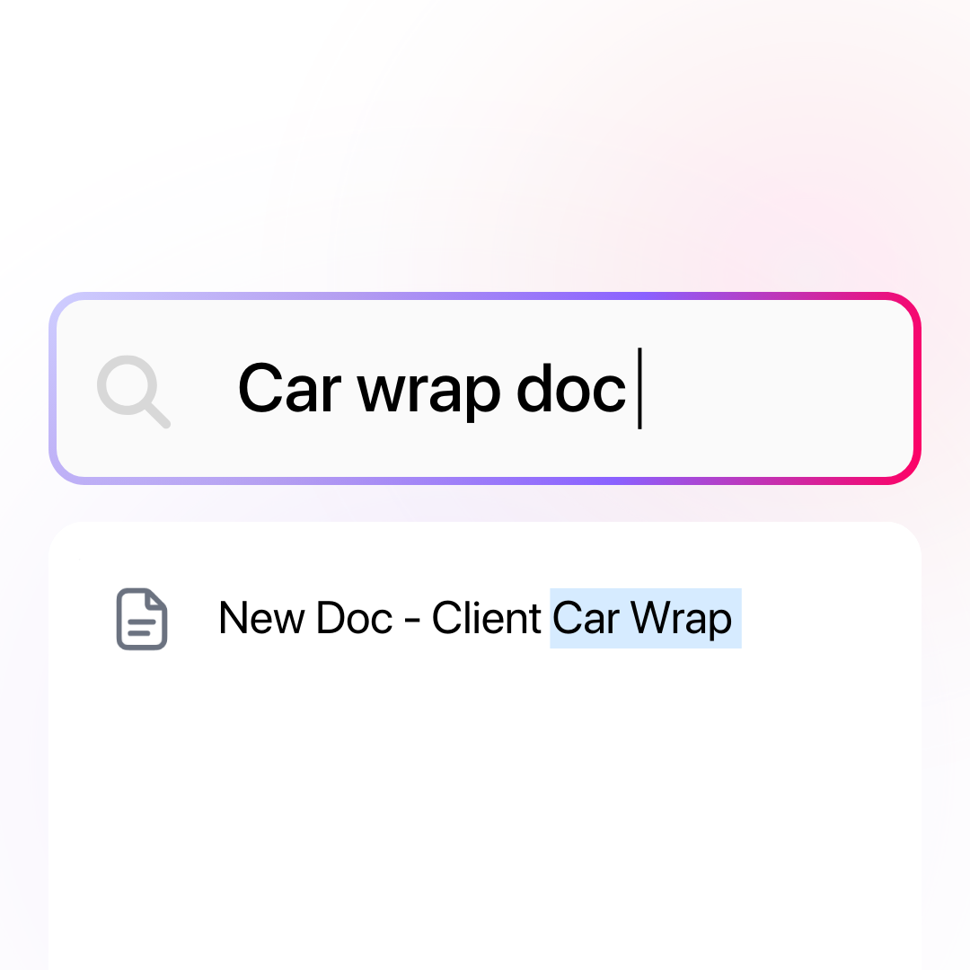 Find any file, conversation, customer detail, or piece of information instantly. Answer client questions on the spot instead of saying "let me get back to you."