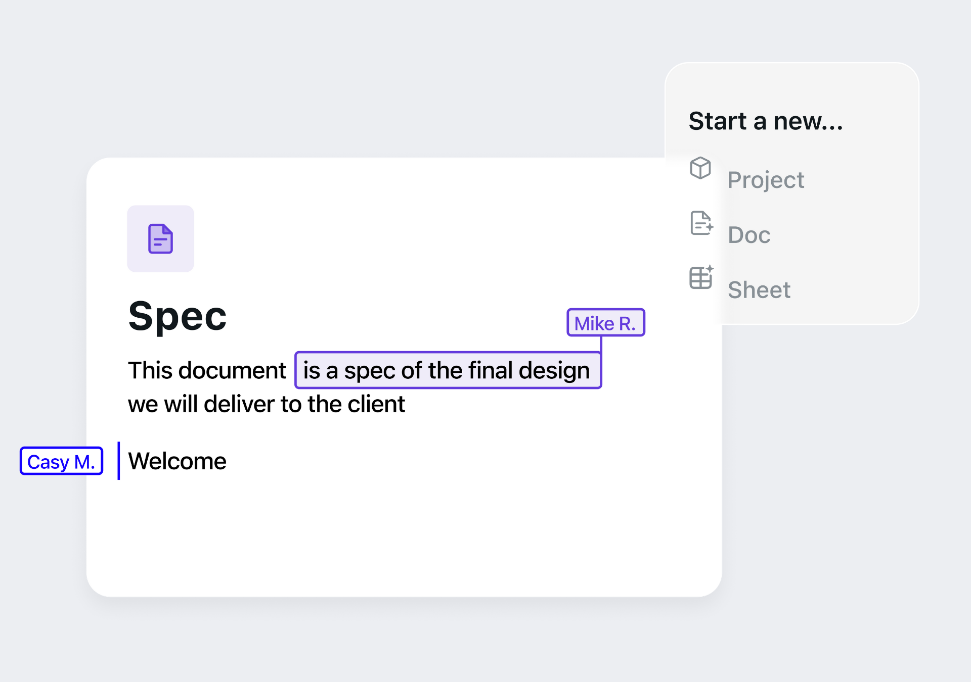 Leave comments and @mention team members on any doc.