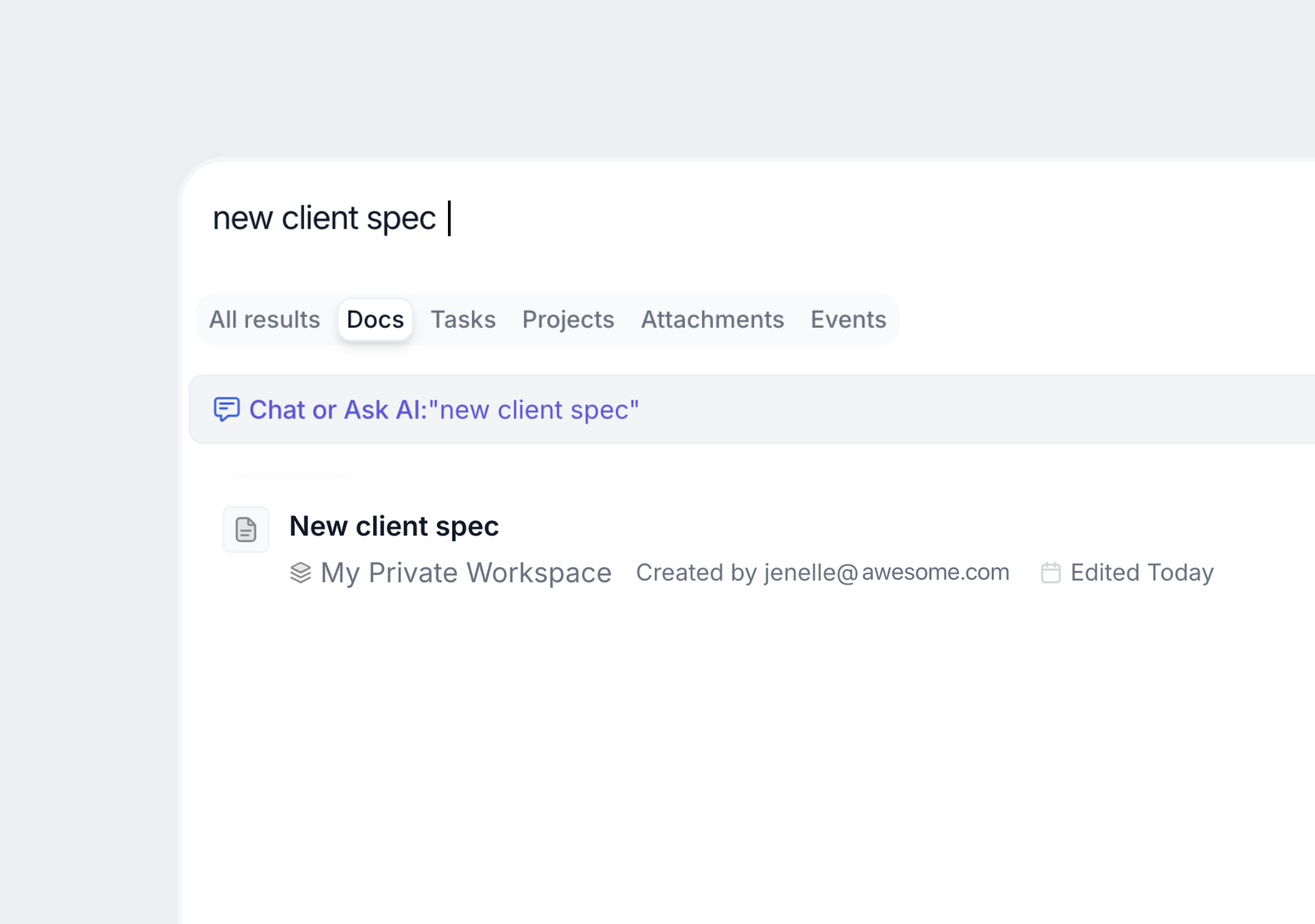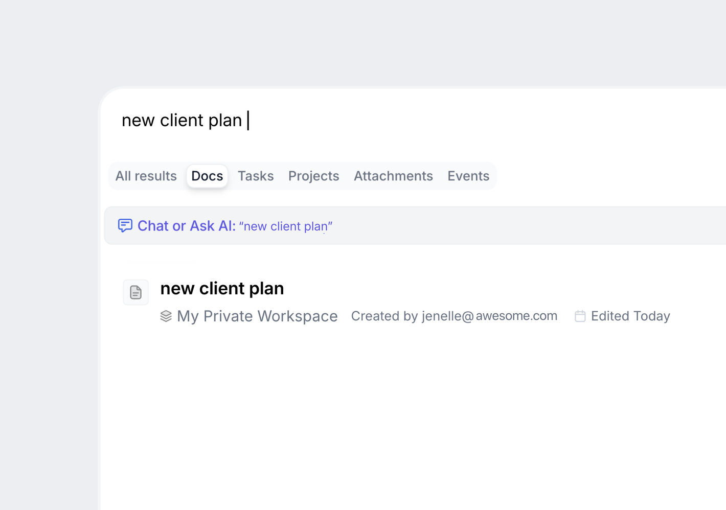 Search for projects, tasks, files, docs, and meetings in one universal search bar.