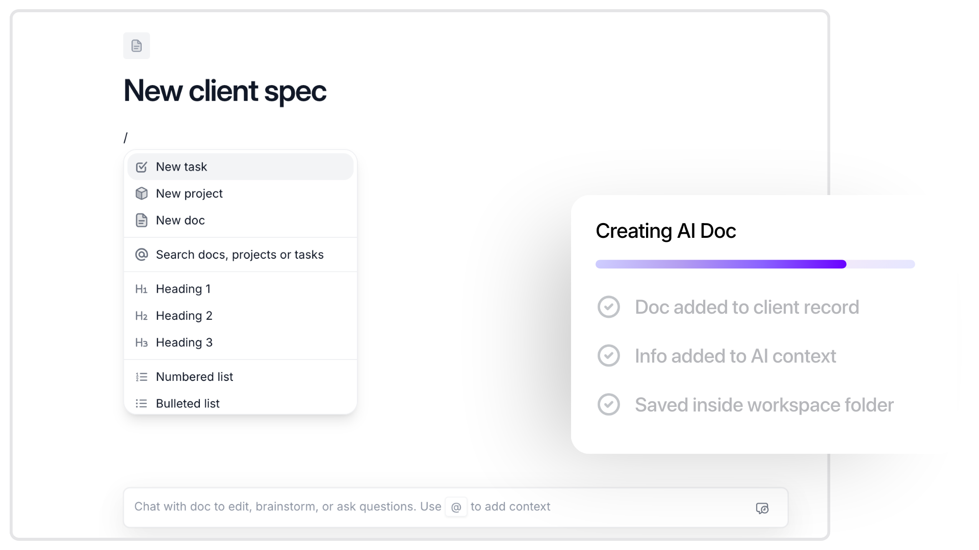 The docs features that help you serve clients better and win more work.