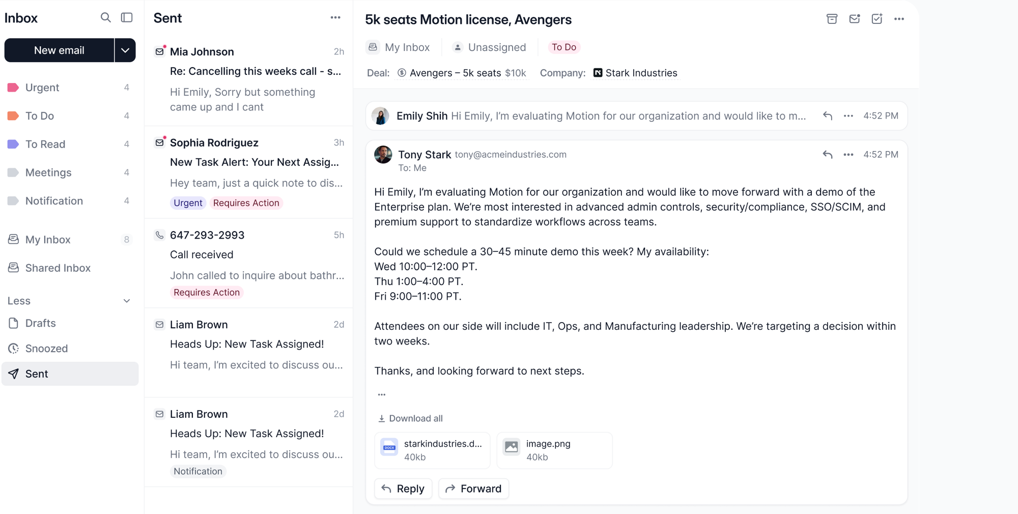 That's it. Wonderly automatically handles new leads, organizes your inbox, routes messages to your team, and shows deal context in every email.