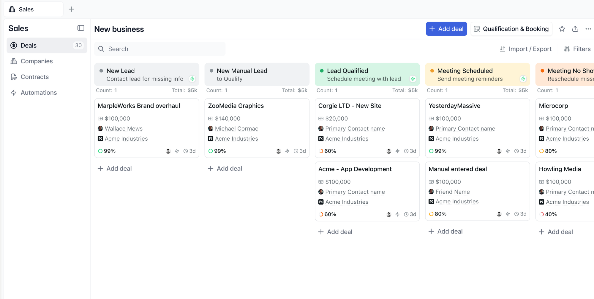 They're automatically added as a deal in your pipeline —with all their info, ready to track.