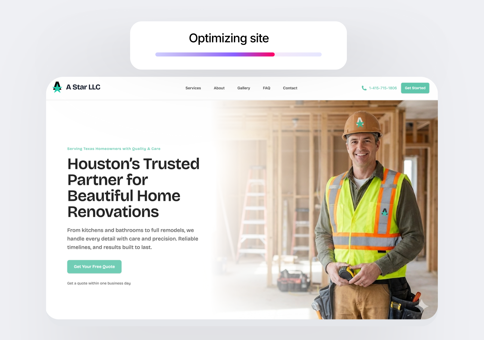 Sign up — for free. AI builds your site in 10 minutes. Review it. Launch it. Watch the leads pour in.