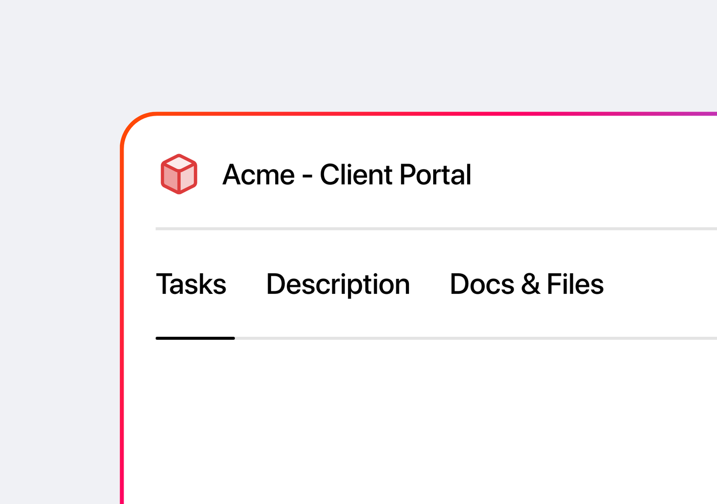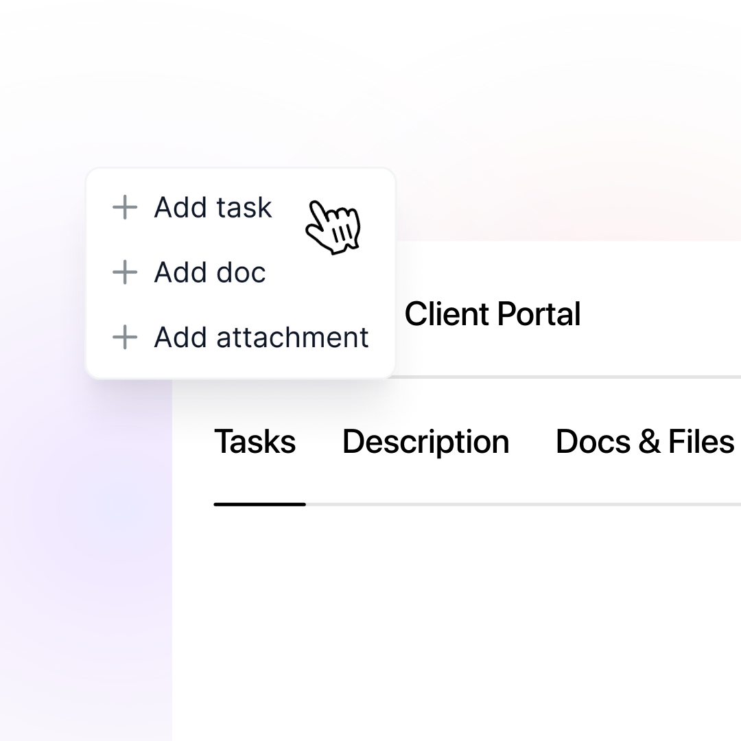 You control exactly what each client sees. You can share project status, tasks, files, documents, messages, and onboarding steps — as much or as little as makes sense for your business.