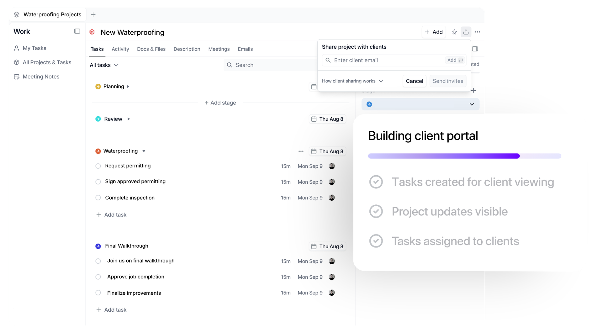 One professional portal where clients see everything and stay informed