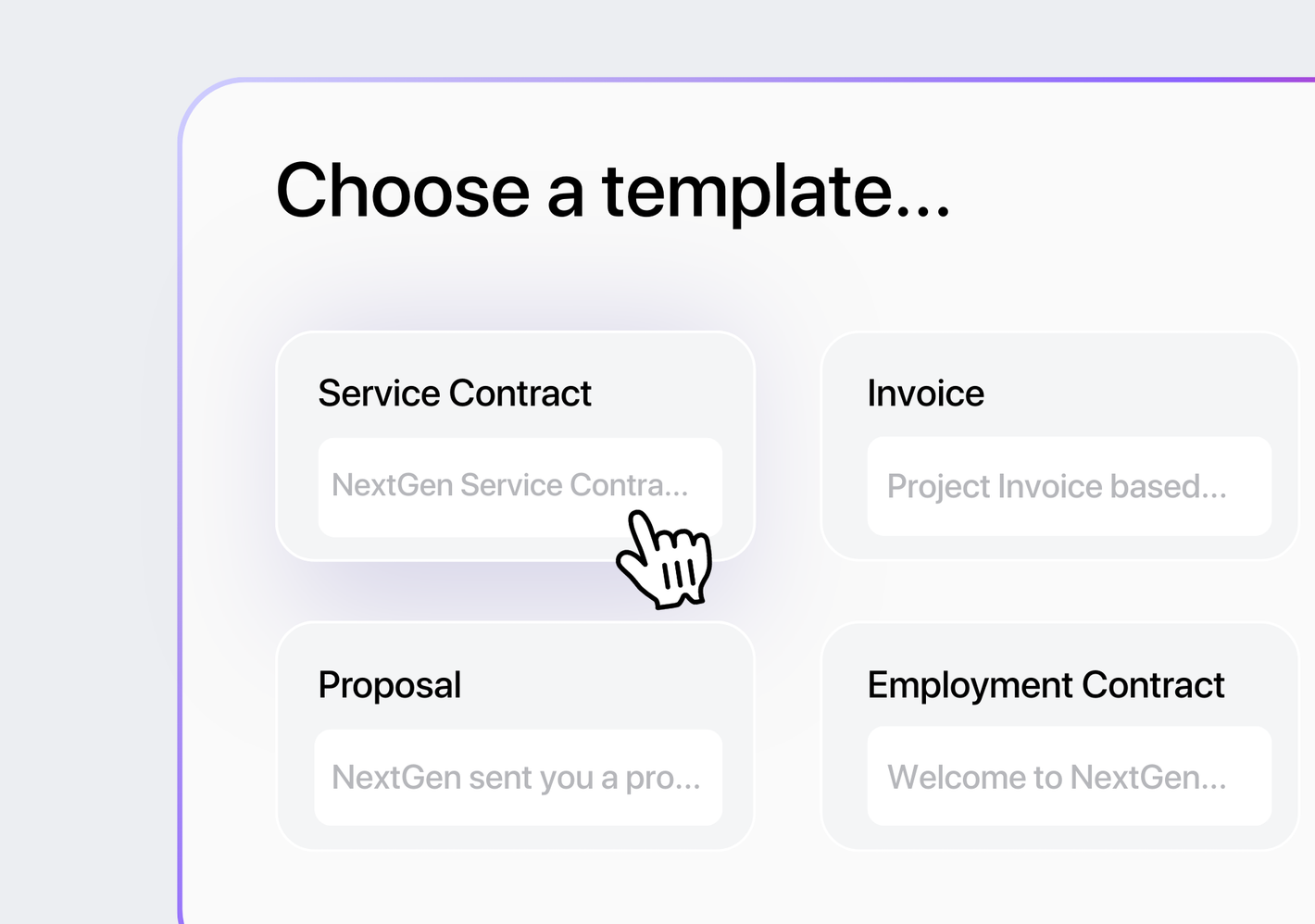 Choose a quote or proposal template. Customize it however you’d like. Once your customer is ready to sign, easily create your contract via template and add and remove clauses easily.