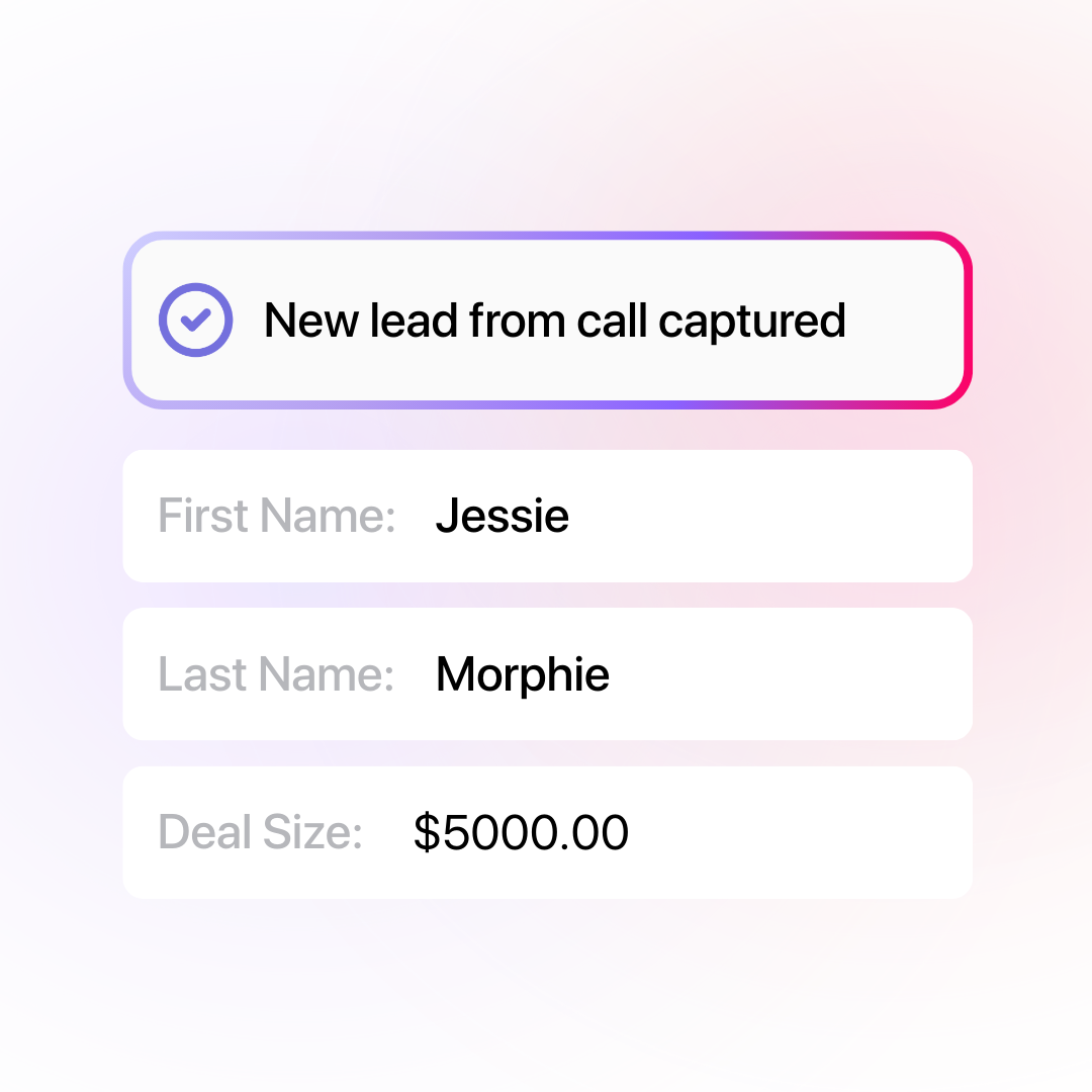 After a sales call, customer details are already in your CRM — name, project details, pricing, everything.