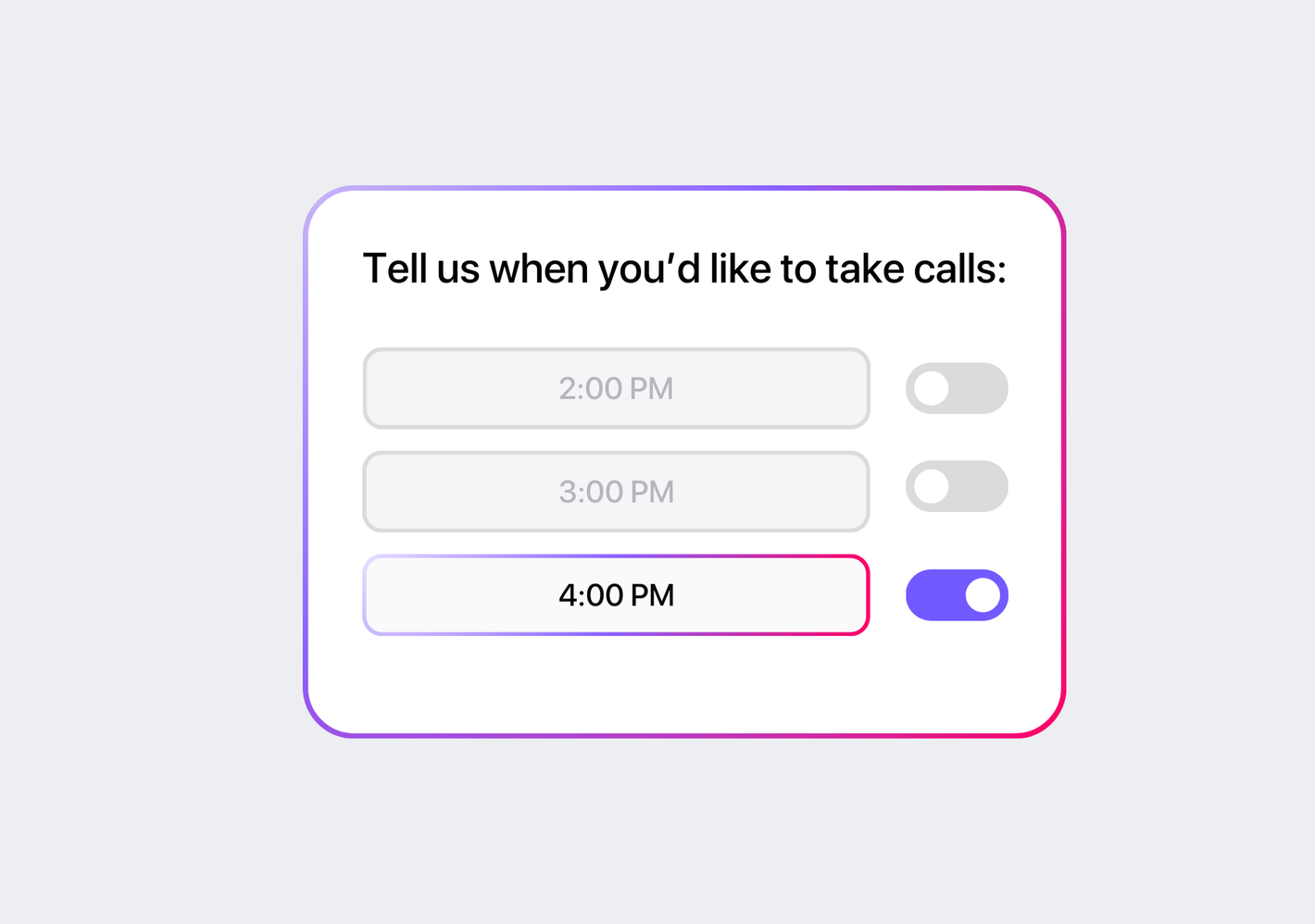 You — or your employees — set when each team member is available for calls. Wonderly only books meetings during times that actually work.