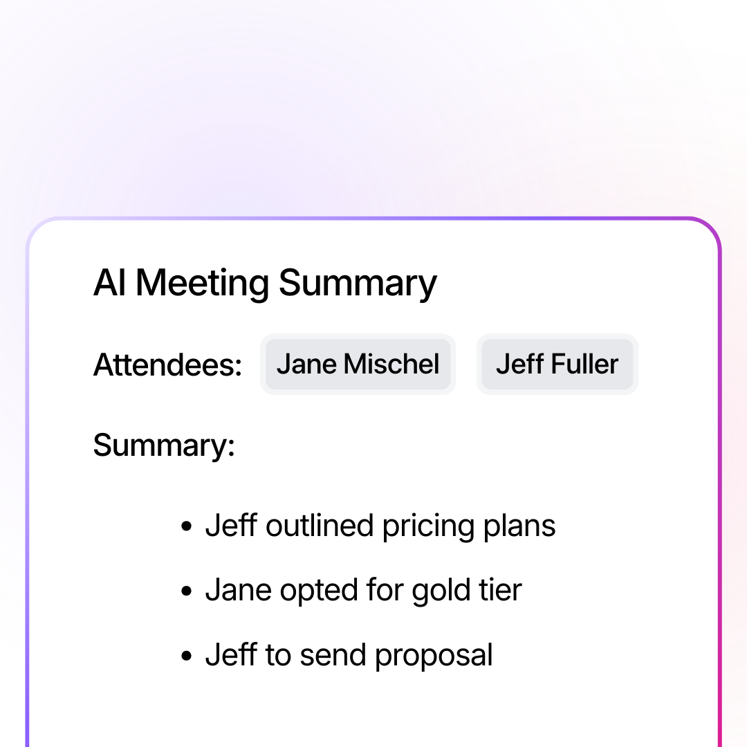 Every call is recorded, transcribed, and summarized with action items ready for follow-up.