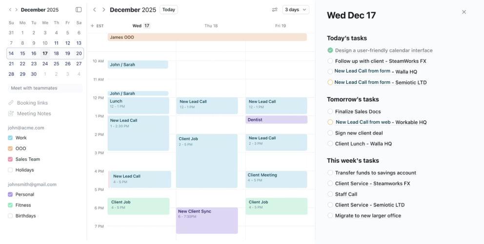 See your entire team's schedule, meetings, and availability in one view. No more asking "who's free Thursday?"