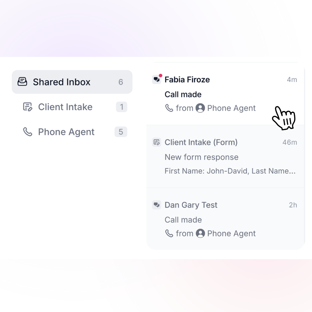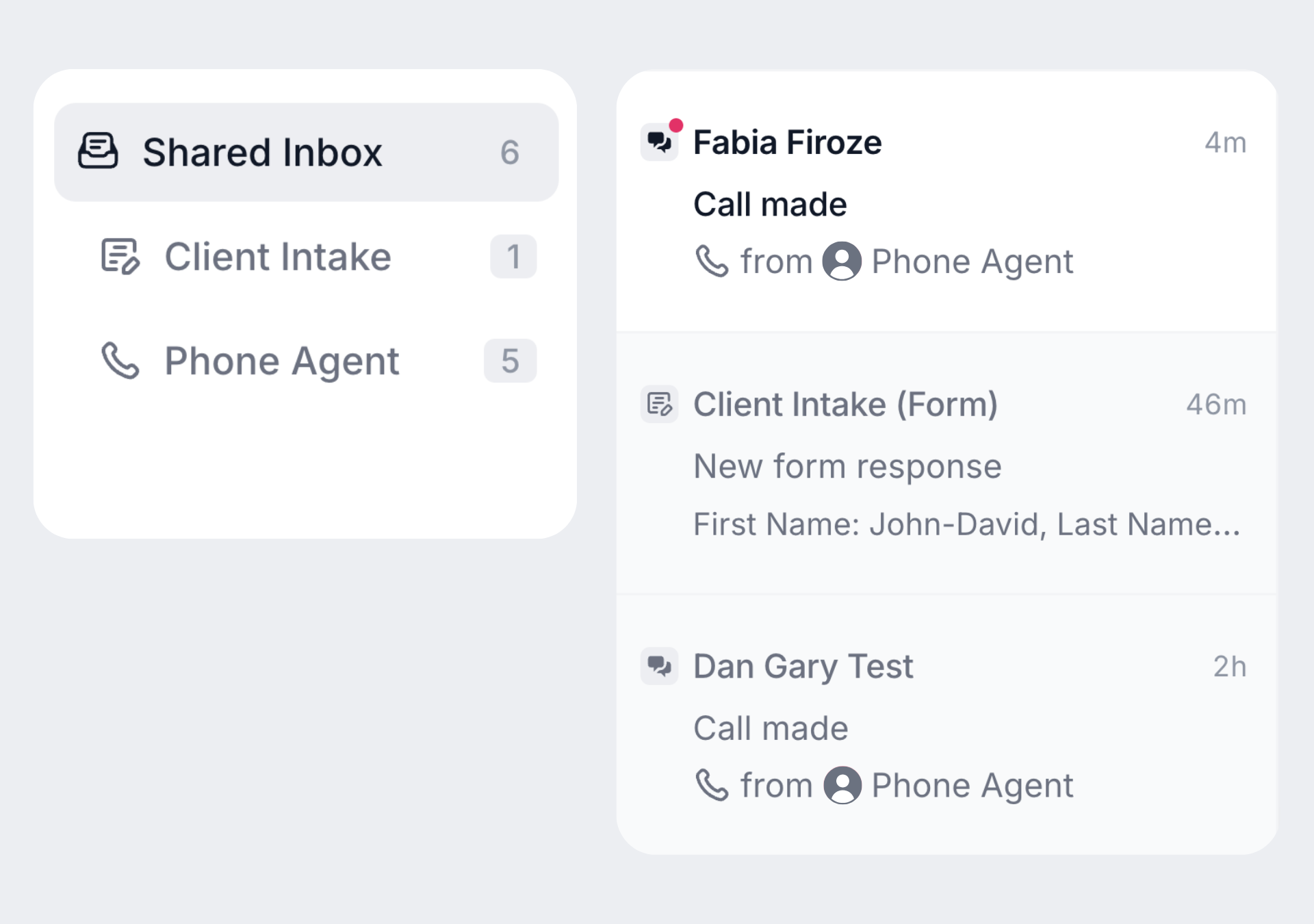 Every client email, text, portal message, call, mention, and notification appears in your unified inbox — organized and prioritized.