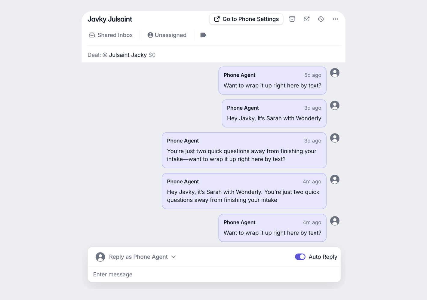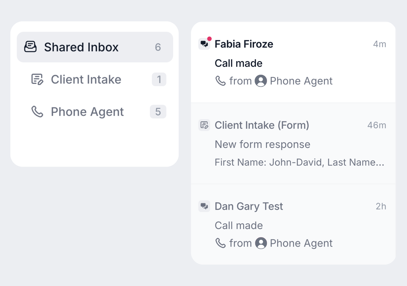 See every lead inquiry, sales email, client message, text, call, portal update, and team mention in one feed—from first contact to ongoing work. Nothing gets missed across your entire customer journey.