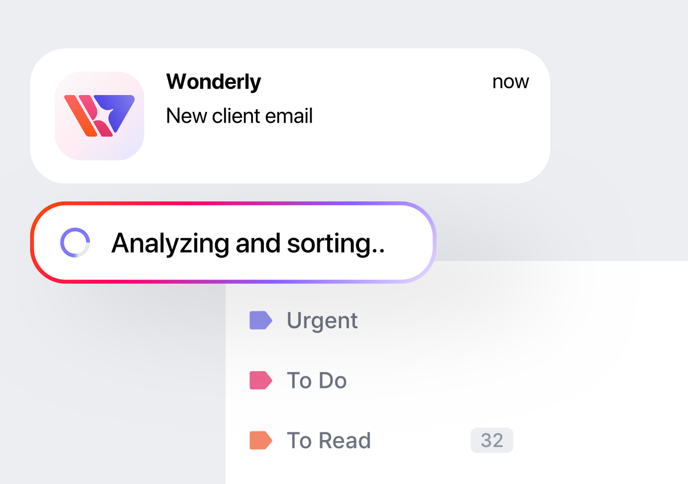 Wonderly's AI reads each incoming email and automatically applies a label — to do, urgent, or to read — based on the content, sender, and context. You open your inbox already knowing what needs attention first.