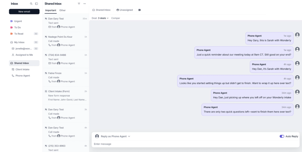 Stop managing messages and start responding to them. Wonderly's unified inbox brings everything together, sorts it with AI, and drafts replies so your team spends less time in email and more time on client work.